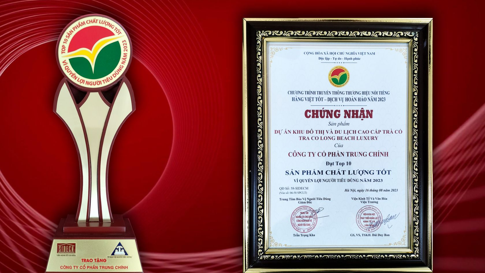 Sự kiện truyền thông “ Hàng Việt tốt – Dịch vụ hoàn hảo – Thương hiệu nổi tiếng 2023” do Viện Kinh tế và Văn hóa kết hợp cùng Trung tâm Bảo vệ Người tiêu dùng tổ chức bầu chọn những doanh nghiệp tiêu biểu trên cả nước đã vinh danh sản phẩm Dự án Khu đô thị và Du lịch cao cấp Trà Cổ của Công ty cổ phần Trung Chính trong Top 10 sản phẩm chất lượng tốt vì quyền lợi người tiêu dùng năm 2023. Giải thưởng nằm trong chuỗi sự kiện “Hàng Việt tốt” được tổ chức lần thứ 17 ngày 20 tháng 8 năm 2023, nhằm lựa chọn các thương hiệu, sản phẩm, dịch vụ uy tín, chất lượng cao để giới thiệu tới đông đảo người tiêu dùng trong cả nước.